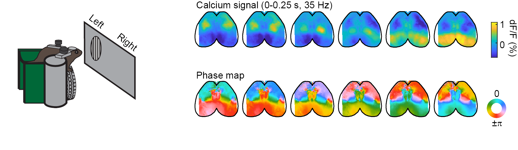 不同脑区的神经活动反表征行为过程中身体各部位的激活,或者在静息状态下的记忆重现。全脑神经活动通常呈现出动态模式,类似于水流或大气系统中的漩涡和湍流现象的波动。这些复杂的脑动态可以通过广域脑钙成像有效捕捉。